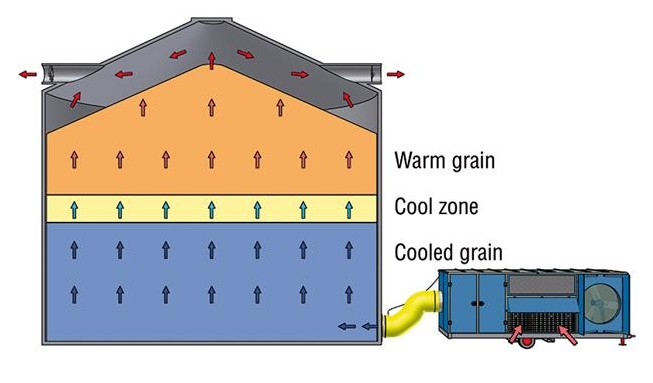 A grain cooler (also known as a grain chiller or grain refrigeration unit) is a specialized HVAC system that conditions ambient air to precise temperature and humidity levels before blowing it through stored grain . Unlike simple aeration fans that rely on favorable weather conditions, grain coolers actively treat the air—cooling it and adjusting its relative humidity—to create optimal storage conditions regardless of outside weather .
